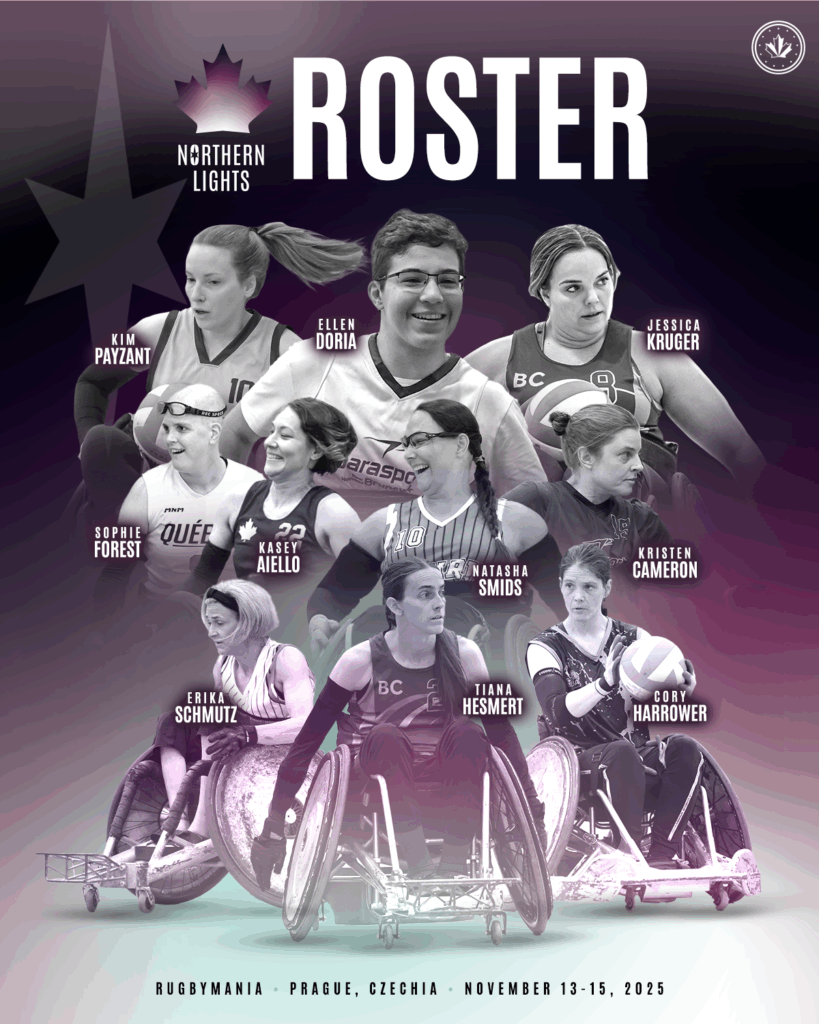 October 27, 2025Rugby en fauteuil roulant Canada est fière d’annoncer la composition de l’équipe des Northern Lights, soit l’équipe féminine canadienne de développement, qui se prépare à entrer dans l’histoire à l’occasion du tournoi RugbyMania 2025 qui va avoir lieu à Prague, en Tchéquie.